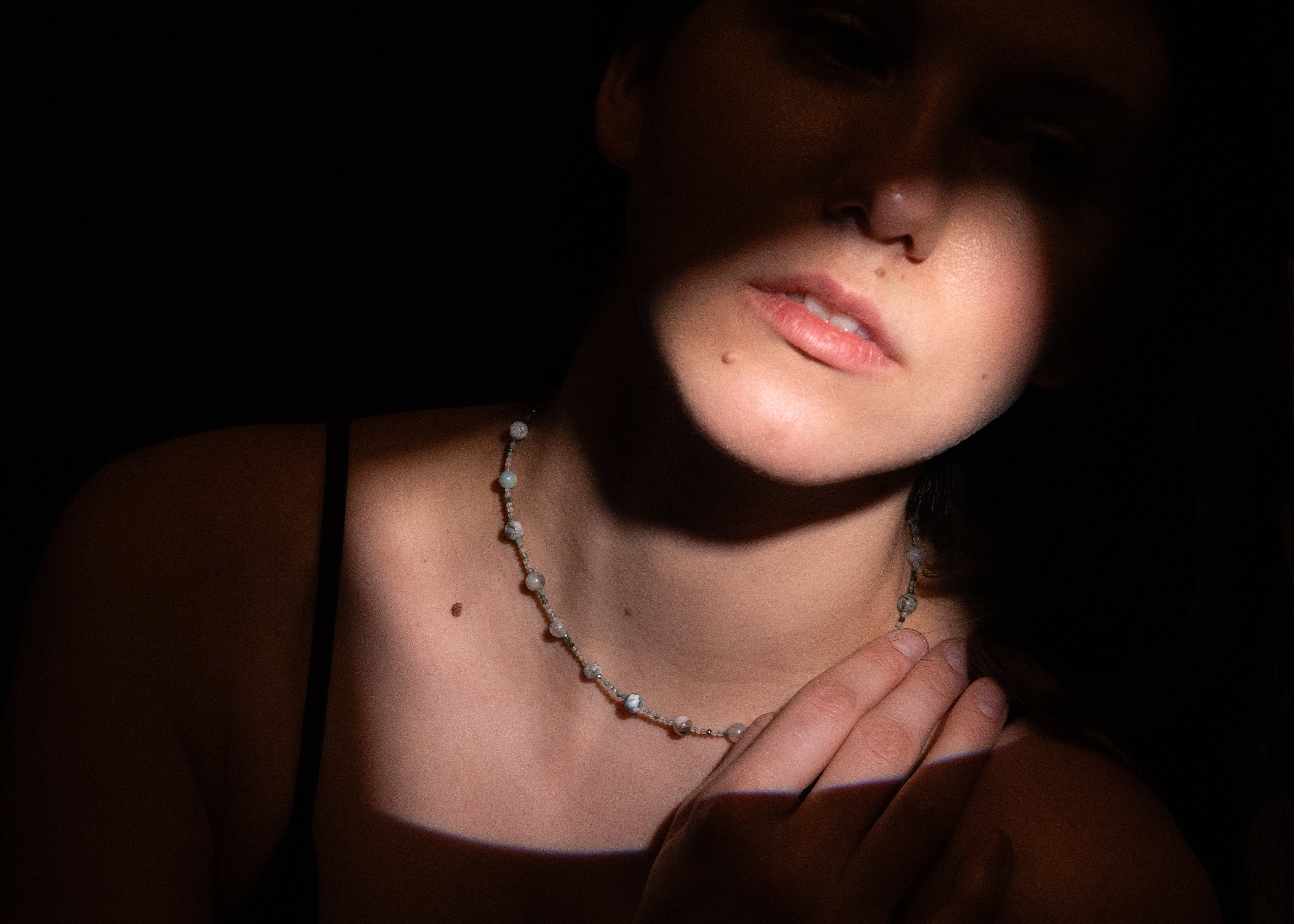 Mit Edelsteinen gefärbt.